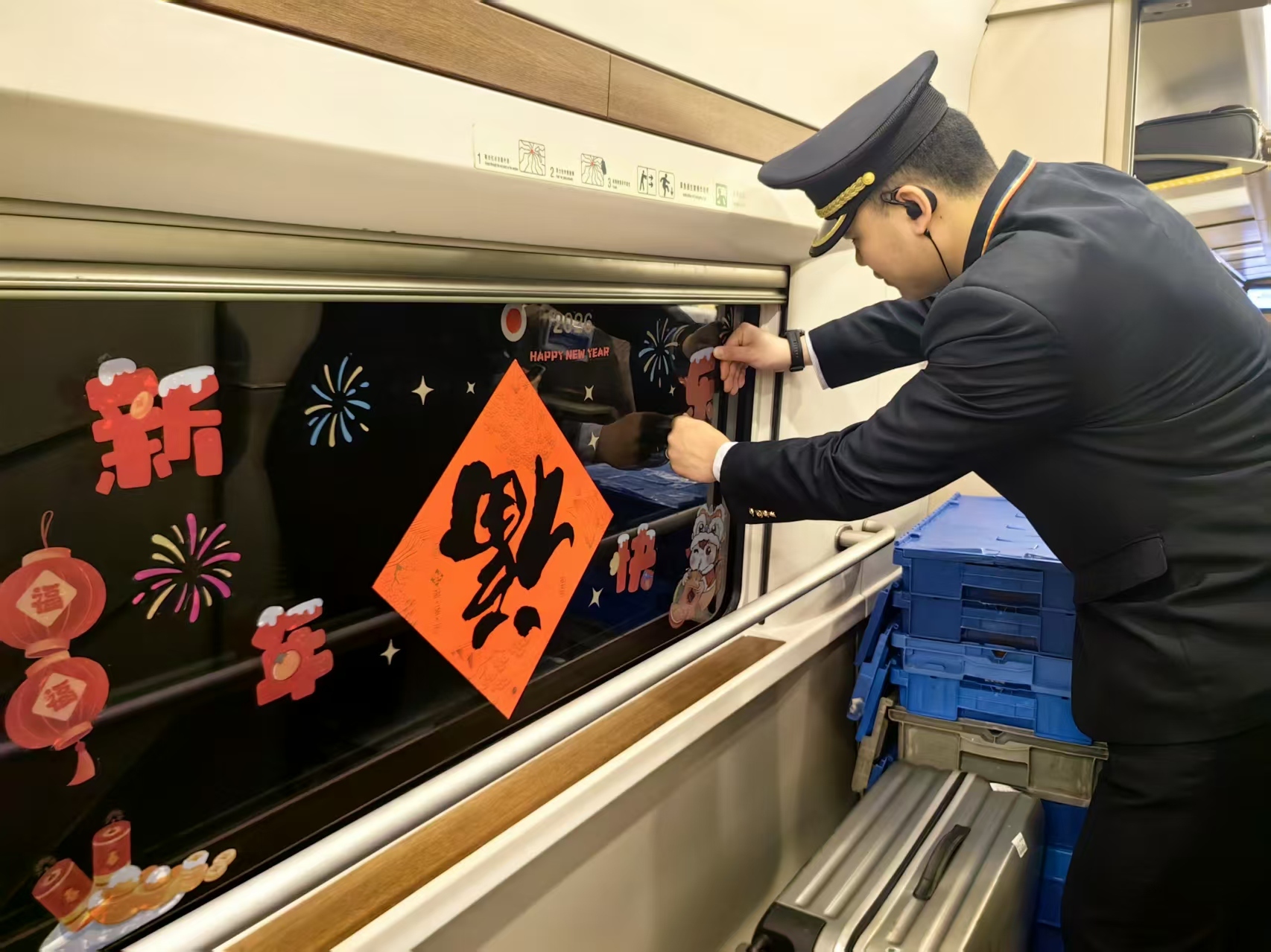 “为了防止突发情况,我会准备一个随车服务箱,装上针线盒、手机充电线、儿童绘本、润滑油等便民备品,在旅客需要时提供帮助。”高杨介绍道。