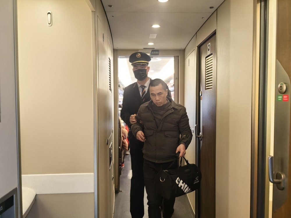 就在2月26日,G2131次列车在长沙南站等待发车,高杨接到了一名视障旅客,便和他说道:“您好,把手扶在我的肩上,我带您过去。”